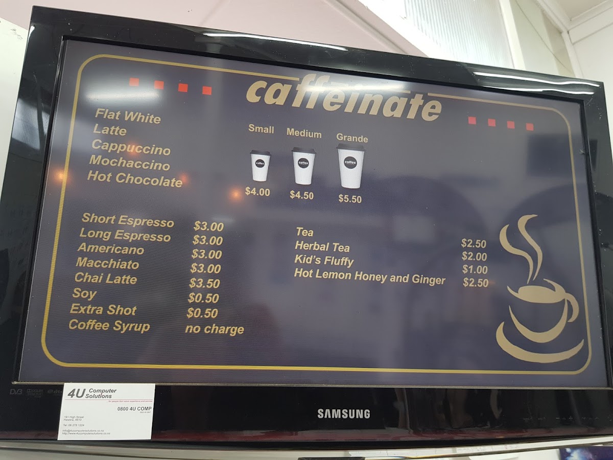 Welcome to Caffeinate, a charming coffee shop located at 152 High Street in Hāwera, New Zealand. This cozy spot is celebrated for its meticulously crafted coffee offerings, including Kaputino, Moka, and the eye-catching Tiakarete Wera. The menu is designed to cater to every coffee lover, with options like Macchiato, Americano, and unique flavor additions such as extra shots and coffee syrup.